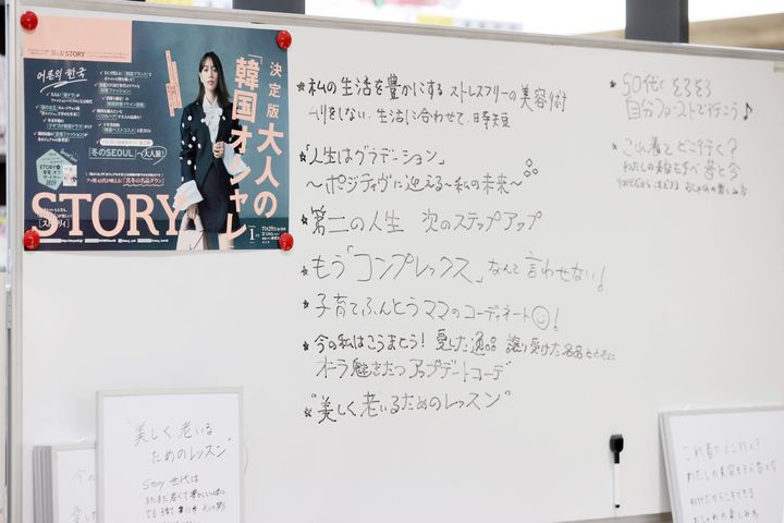 まずは河合と小仲の自己紹介から。河合が『JJ』から始まり女性誌の編集者一筋のキャリアを歩んでいること、小仲が未経験から40代でSTORYライターになったことなど、読者のみなさんにとっては意外な(?)2人のバックグラウンドには驚きの声も。会場の空気がほぐれたところで、〝STORYで実施してほしい企画〟をお1人ずつ発表していただくお時間に…!