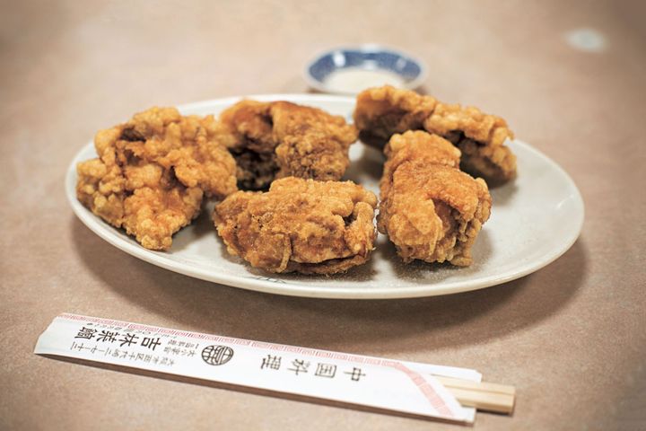 鶏唐揚げ。フワッと軽く、羽のようなエアリー感が悩殺的。鶏唐揚げ950円は〈吉林菜館〉の神話的一品にして、町中華の神秘さえ感じさせる。