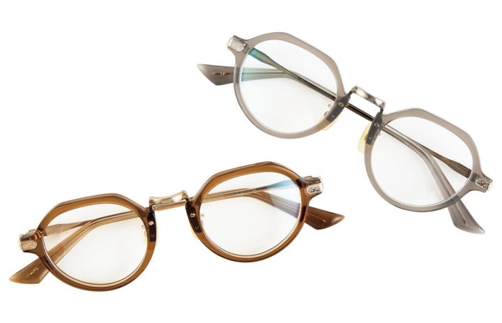 クラフトマンシップに重きを置き、国産で上質なアイウェアを展開する〈アヤメ〉。新モデルの「GNCP」は、フランスのヴィンテージでよく見られる、上部を一直線にしたクラウンパント型。小ぶりで女性でも掛けやすく、抜け感のある半透明のフレームだから、顔なじみもいい。チタン製のブリッジや、つるに施された彫金模様も個性を発揮。ほかにブラックなど、6色で展開。