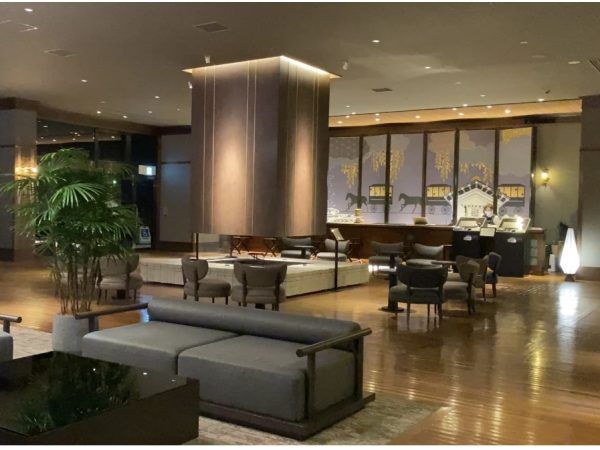 暖炉が美しいモダンで落ち着いたロビーラウンジ