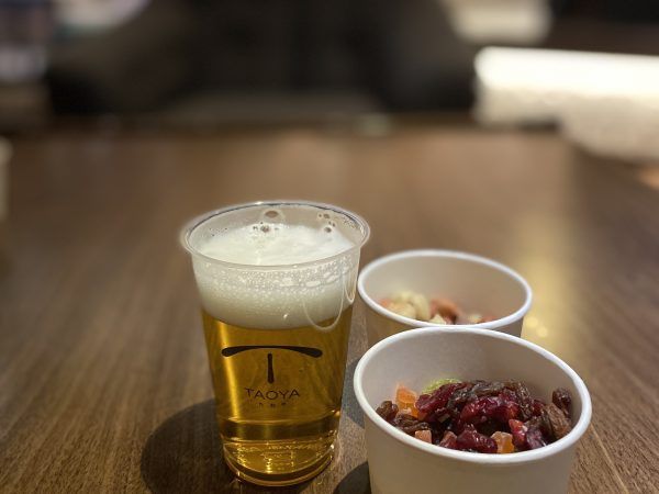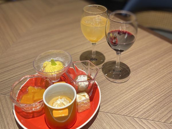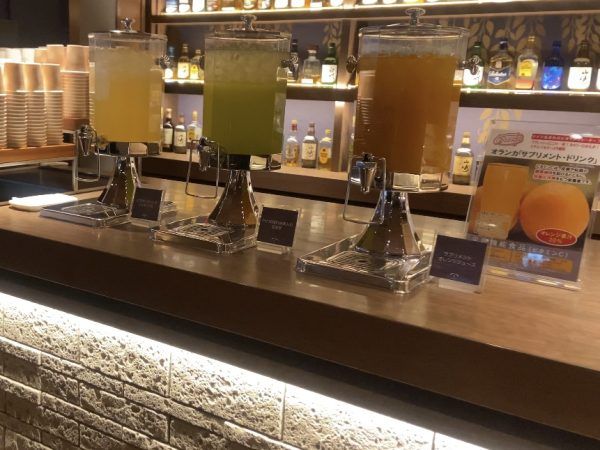 アイスやコーヒー、紅茶、おつまみナッツ、ドライフルーツ、ゆべしもあり充実していました。アルコールも飲み放題!
