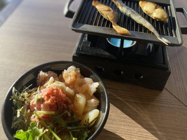 14種類の海鮮を好きなだけごはんに盛り付けられる幸せな朝の始まり♪
