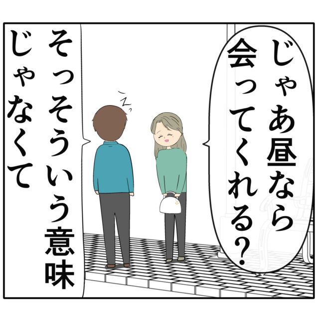 すると「じゃあ昼なら会ってくれる?」と聞かれ、「そっそういう意味じゃなくて」と慌てるろみ緒さん。