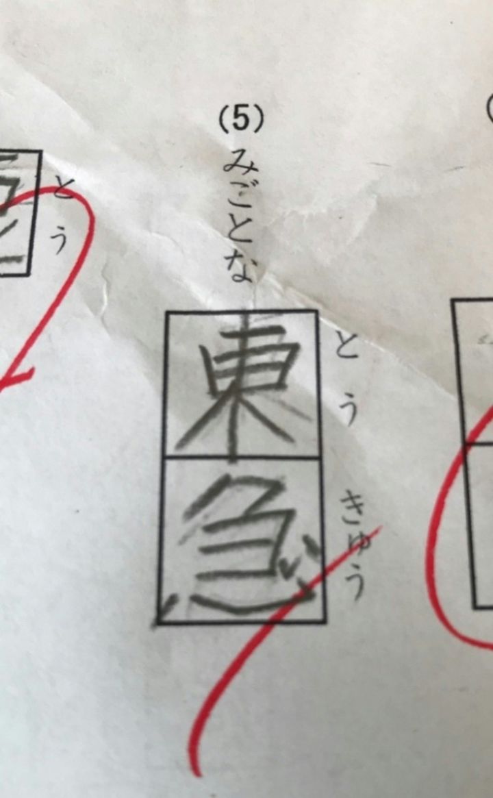 「みごとな東急」と書いて誤答とされた、小学5年生の南クリさん。おそらく「投球」が正しい答えなのかなと思いますが、東急電鉄を褒めている例文だと考えると南クリさんの回答も誤答とは言い切れないのかも。不正解だったのは残念ですが、鉄道愛が伝わりますね。