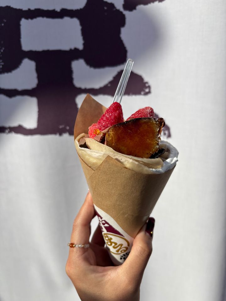 いちごチョコクレープは、お芋だけでなくフローズンいちごとチョコレートソースが!🍓🍫