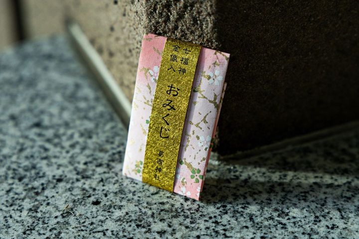 運だめしのおみくじは、10種類の色から選べる「七福神みくじ」を。中にはおみくじ用紙と共に、七福神いずれかの小さな金のお守りが入っています。財布などに入れて開運を願いましょう。