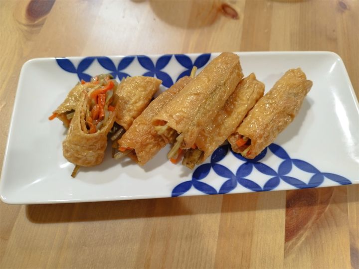 市販の味付き油揚げできんぴらを巻くだけなので、ほんと簡単に作れちゃいます!きんぴらも市販のものにすれば、秒で出来ちゃう(笑)。