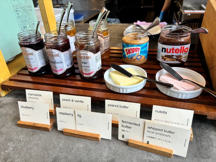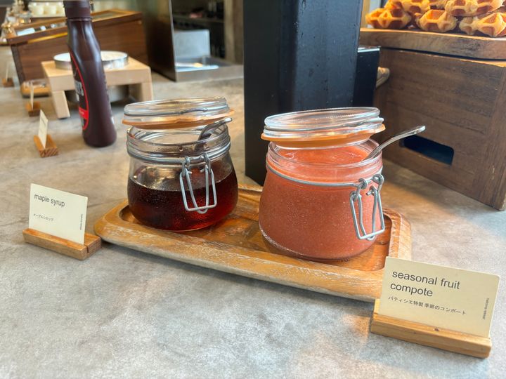 ジャムやスプレッドも豊富で、パティシエ特製の季節のコンポートもありました。