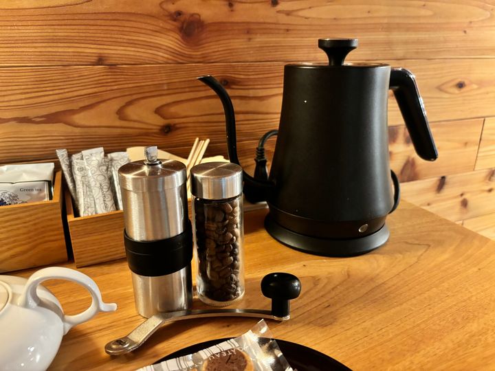 コーヒー豆やミルもあるので、淹れたてコーヒーと一緒に楽しめます。