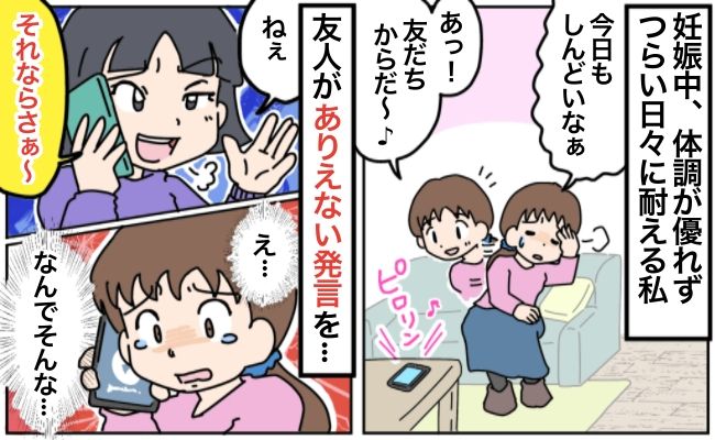 「それならさぁ」妊娠中、体調が優れずつらい日々に耐える私。思わず涙した友人のひどすぎる言葉とは?