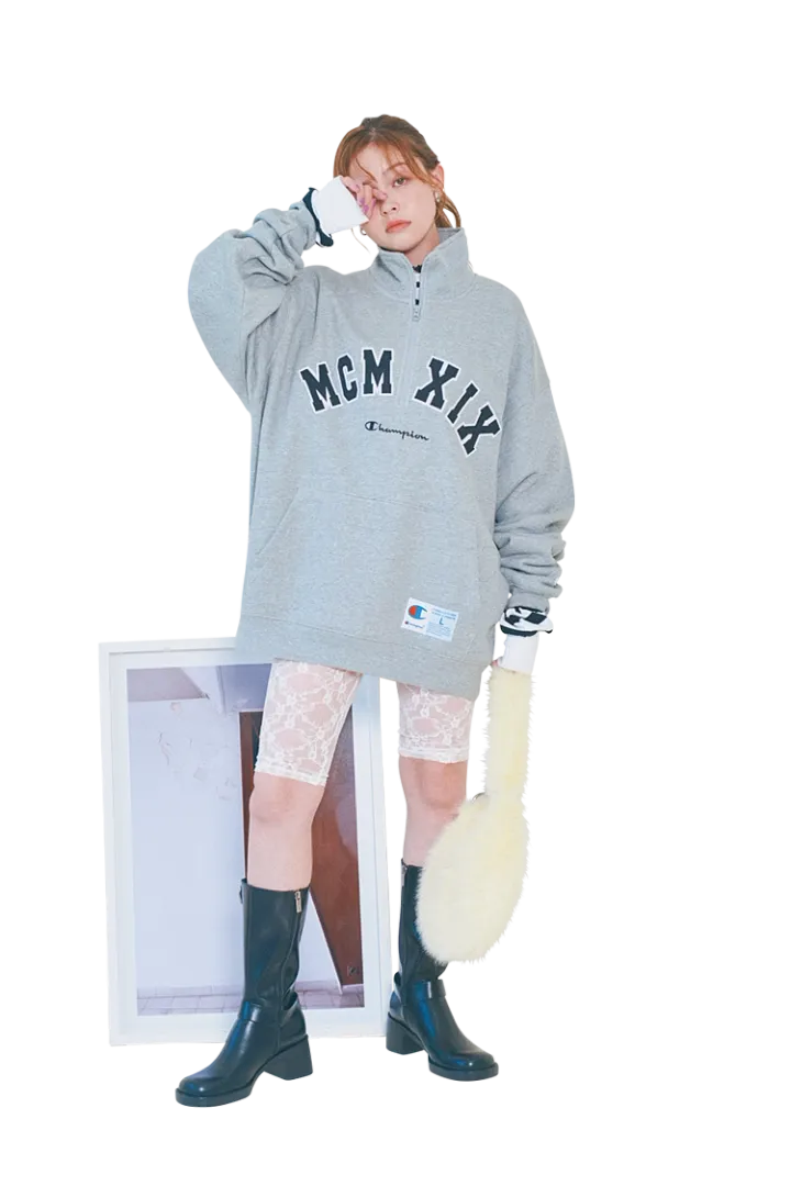 ドデカロゴ×オーバーサイズのものをミニワンピちっくに着るもよし、小さめロゴやショート丈のもので甘め服とテイストミックスなコーデにするもよし!