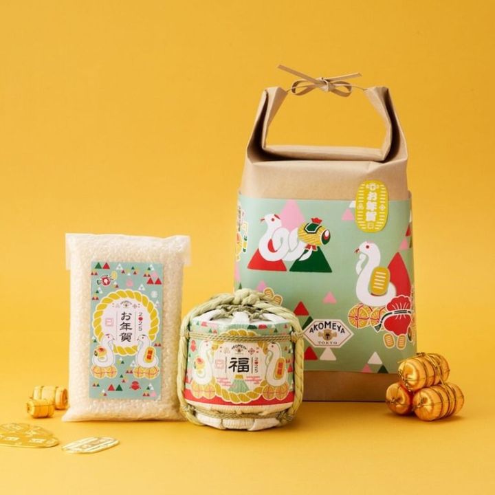 「AKOMEYA TOKYO」のお年賀ギフトは、和の心を感じる一味違った手土産に。可愛らしい豆樽の中には、兵庫県の櫻政宗で造られた日本酒の樽と、島根県飯南町産のコシヒカリ2合が入っています。日本酒は樽の後ろ側から注げるので、お正月のおめでたい席で盛り上がりそう!お米のギフトもママたちは素直に嬉しいですよね。