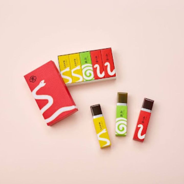 老舗和菓子屋「とらや」の代表商品、羊羹。干支「巳」を描いた期間限定パッケージの小型羊羹と化粧箱です。縁起がよいとされる白蛇に、明るく穏やかな新年を過ごしてほしいという思いが込められています。