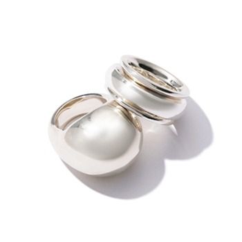 〈右〉ダブルフープリング 41,800円、〈左〉ワイドリング 44,000円/ともにe.m.(e.m. 青山店) 右は2つのリングを重ねたようなデザイン、左は1つで映えるぷっくり感。