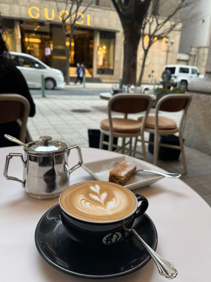 冬の少し寒いテラス席で飲むカプチーノ、絶品です。❄️