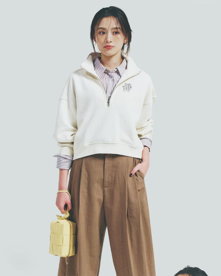 12月31日(火)、大晦日はスーパーへの買い出しや大掃除で何かと重労働に…。そんなときは動きやすさもありつつ大人見えするコーデがおすすめです。ハーフジップのスウェットで機動力を高めながらも、インナーにシャツを重ね着してキレイめスポーティに昇華して。ボトムスは身幅のあるゆったりワイドでストレスフリーを演出しつつ、タックやセンタープレス入りでキリッと引き締めればうまくいきます。