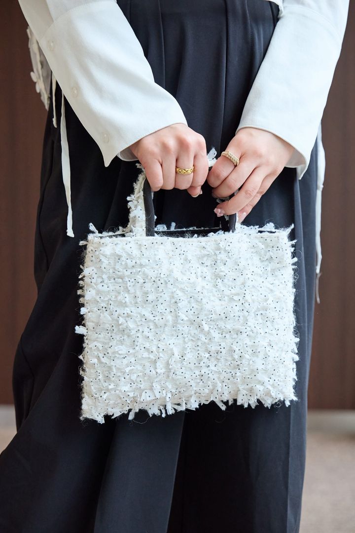 \定番デザインをアレンジする方も/ パールチェーンをつけて特別感を。 チャーム使いも楽しめるバッグです