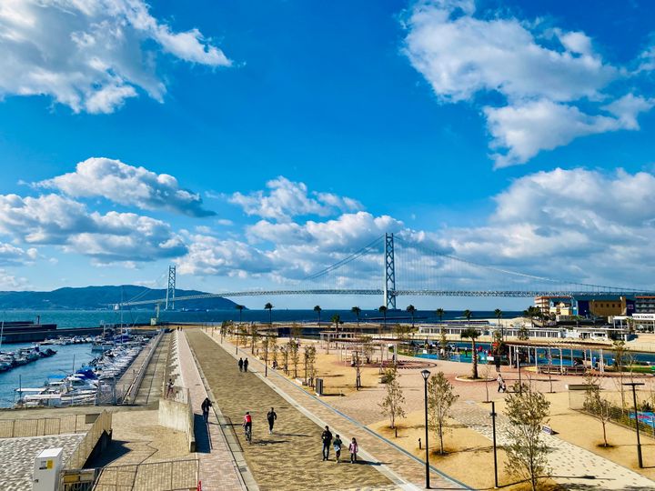 明石海峡大橋と海を一望でき、
