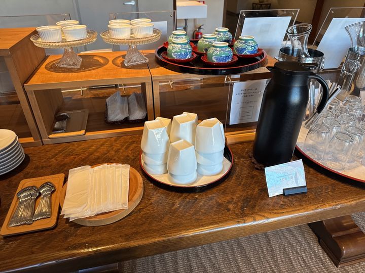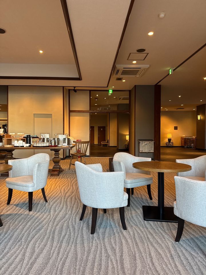 チェックイン時に案内されるラウンジでは、ウェルカムドリンクとしてコーヒーや紅茶、ぐり茶などがいただけます。