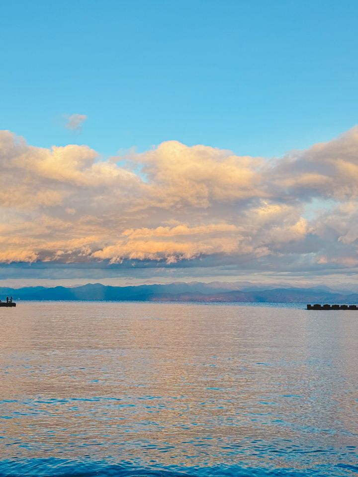 朝7時くらいに目の前の海にある土肥海水浴場にお散歩に行きました。