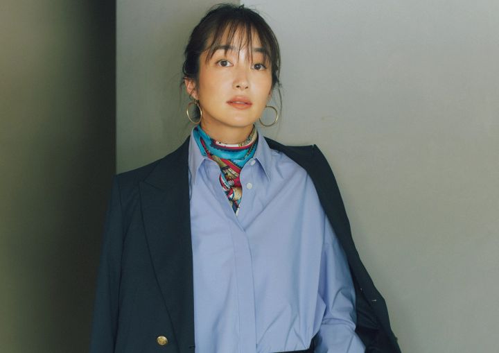 マニッシュなムードをまといつつも首元で気品と華を添えて差をつけて
