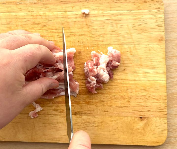 豚肉は約1cm前後幅の千切りにして、