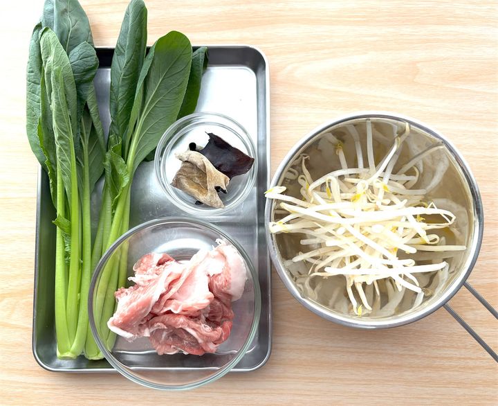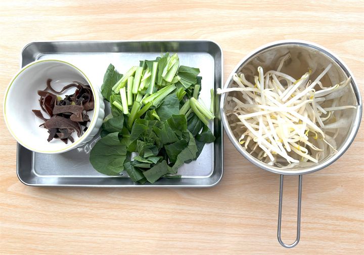 もやしも軽く洗って、水気を取っておきましょう。