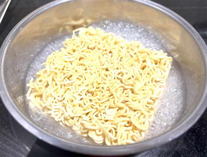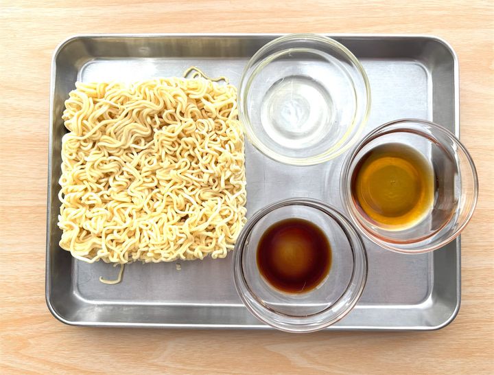 2.中華麺を茹でて焼き色を付けます。