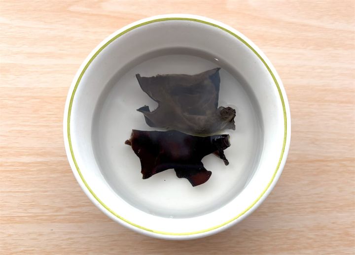 きくらげは、お湯で戻しておきます。
