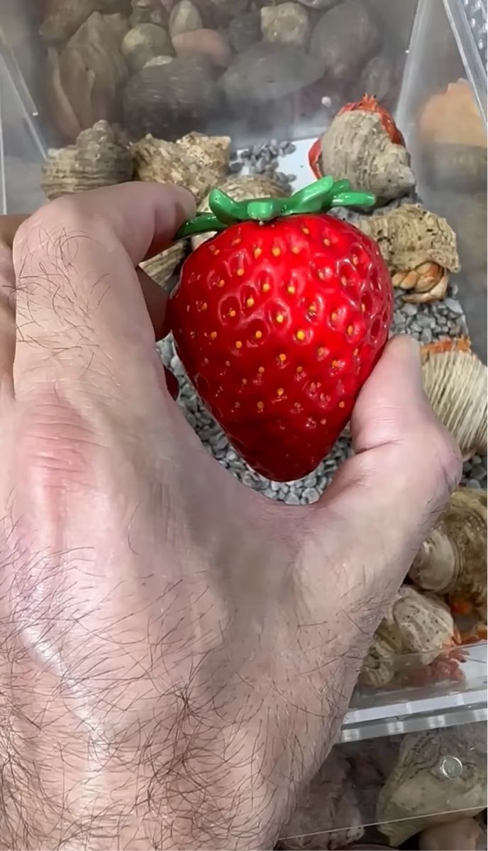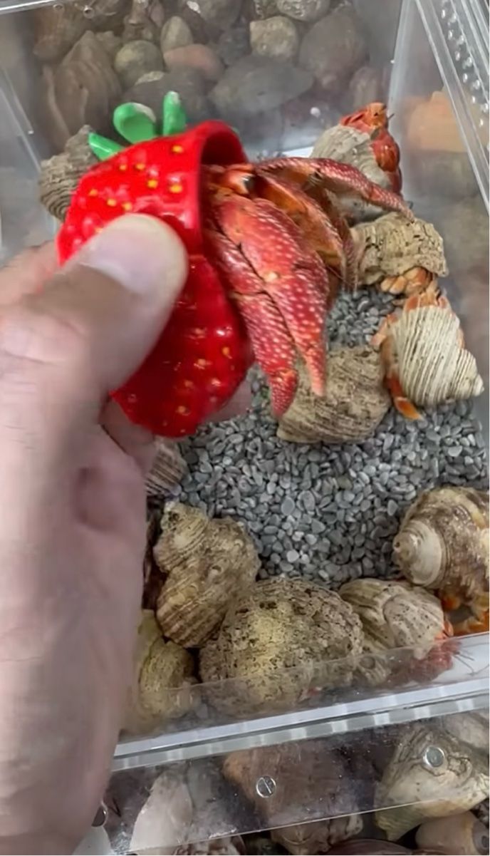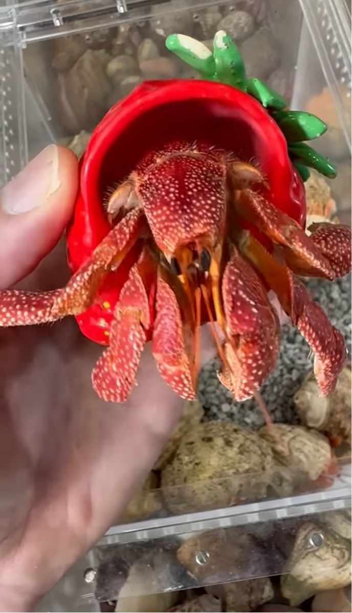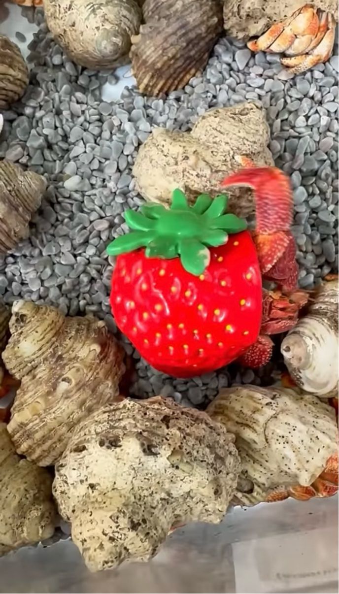 イチゴの置物をお家にして背負う個性的なヤドカリの姿に、とても愛らしいですね!」「ああ、なんてかわいい子なのでしょう!」といった声が寄せられていました。
