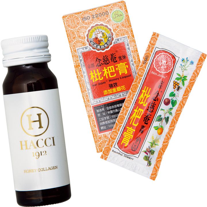 京都念慈菴のびわシロップ枇杷膏は声優さんにも人気だそうで、喉がスッキリ。はちみつが喉に良いのでHACCIのハニーコラーゲンは冷蔵庫のスタメンです。