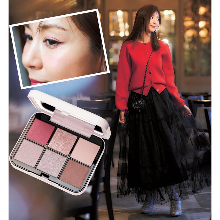 写真左下:マット、パール、ツヤなど質感の異なる6色のピンクが揃った幸運パレット。スナイデル ビューティ アイデザイナーn 02 ¥6,600(スナイデル ビューティ)