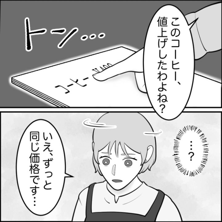 衝撃のエピソードを漫画化!今回は、クレーマーのおばさんが職場のカフェに来て勘違いをして騒ぎ始めて困った主人公のお話。値上げしていない商品を値上げしたといいはるクレーマーにどのように対処していくのでしょうか。