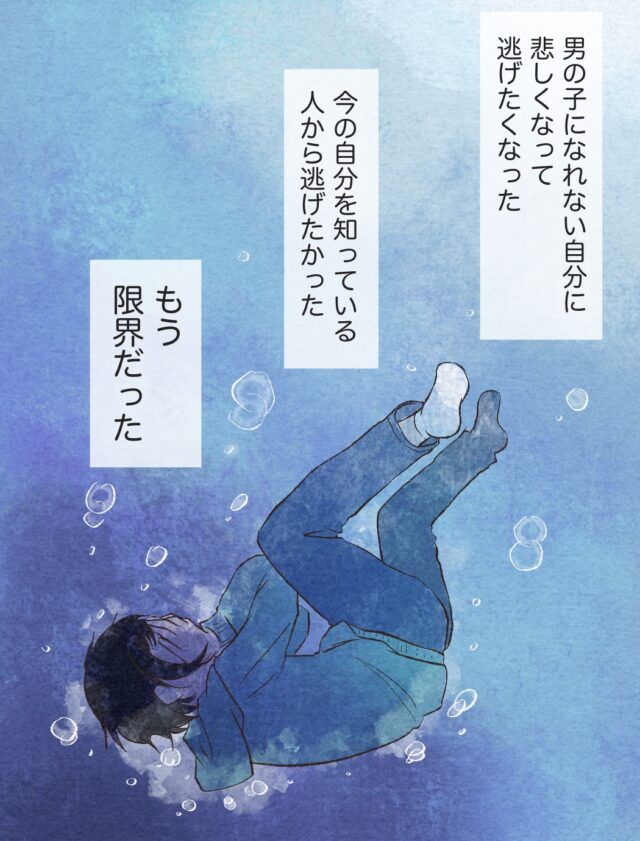 男の子になれない自分に対して、悲しくて逃げ出したくなった奈々さんは、今の自分を知っている人から逃げたい、そう思い込み限界を感じていたのでした。
