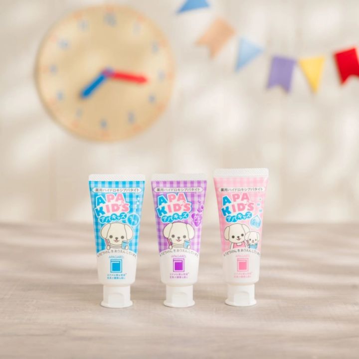 写真左:アパガード アパキッズ(ラムネ) 60g¥657写真中:アパガード アパキッズ(グレープ) 60g¥657写真右:アパガード アパキッズジェル(ストロベリー) 60g¥657医薬部外品/薬用歯みがき