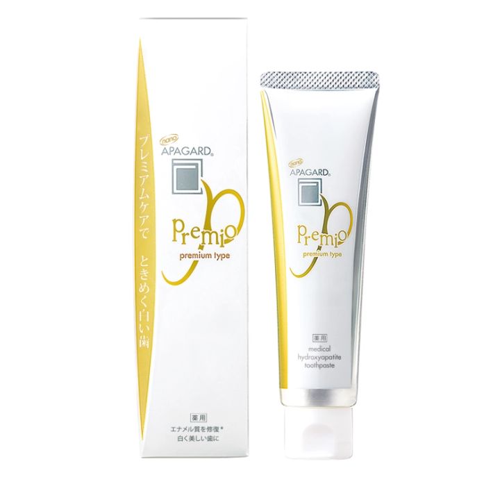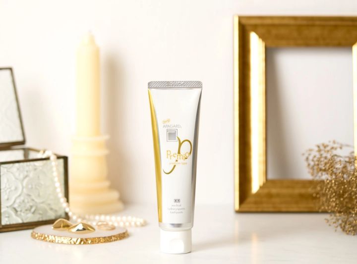 ゴールドのパッケージが目印の「アパガードプレミオ」は白い歯を目指したい方におすすめ。シリーズのなかでも人気No.1の商品です。