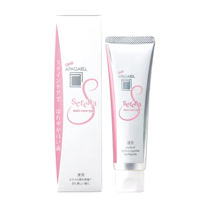 ピンクのパッケージがかわいい「アパガードセレナ」は、ステインケア(着色汚れ)に特化した商品。ステインケア成分ダブル配合<メタリン酸ナトリウム(洗浄剤)・クエン酸ナトリウム(洗浄助剤)>で気になる汚れをしっかりケア。はれやかな白い歯を目指します。