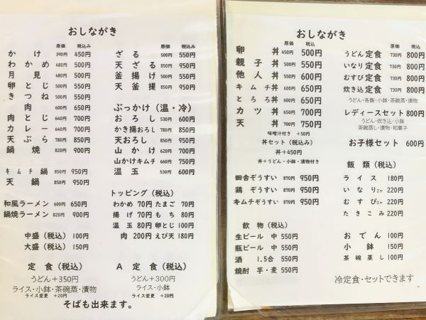 私はレディースセット800円を頼み、夫は卵丼のセットでうどんを大盛にし1100円。うどんの大盛はプラス150円でした。