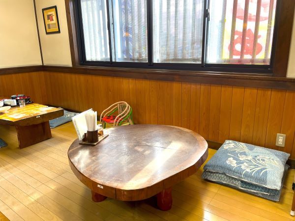 木のぬくもりを感じる和やかで落ち着いた店内。座敷は5テーブル程あり、他にテーブル、カウンターがあります。