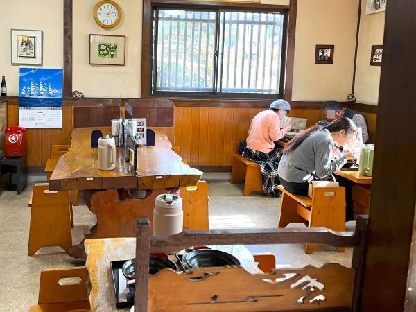 場所は北吉田町にあり、空港からも近い場所のため空港を利用する際のお食事にも便利な立地です。40年程前からある老舗のうどん屋さんということで、地元のファンのみならず、県外から仕事等で近くに来た時は必ずここに来るというお客さんも結構いるようです。時間帯によっては並ぶこともあるようですが、子連れだったのでお座敷が空いていてラッキーでした。