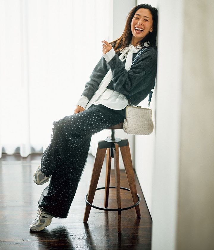 ニット¥28,600パンツ¥31,900(ともにプランクプロジェクト/プランクプロジェクト 青山店)ブラウス¥12,100(ミラ オーウェン/ミラ オーウェン ルミネ新宿2店)バッグ¥104,500(マディソンブルー)スニーカー¥22,000(ニューバランス/エミ ニュウマン新宿店)