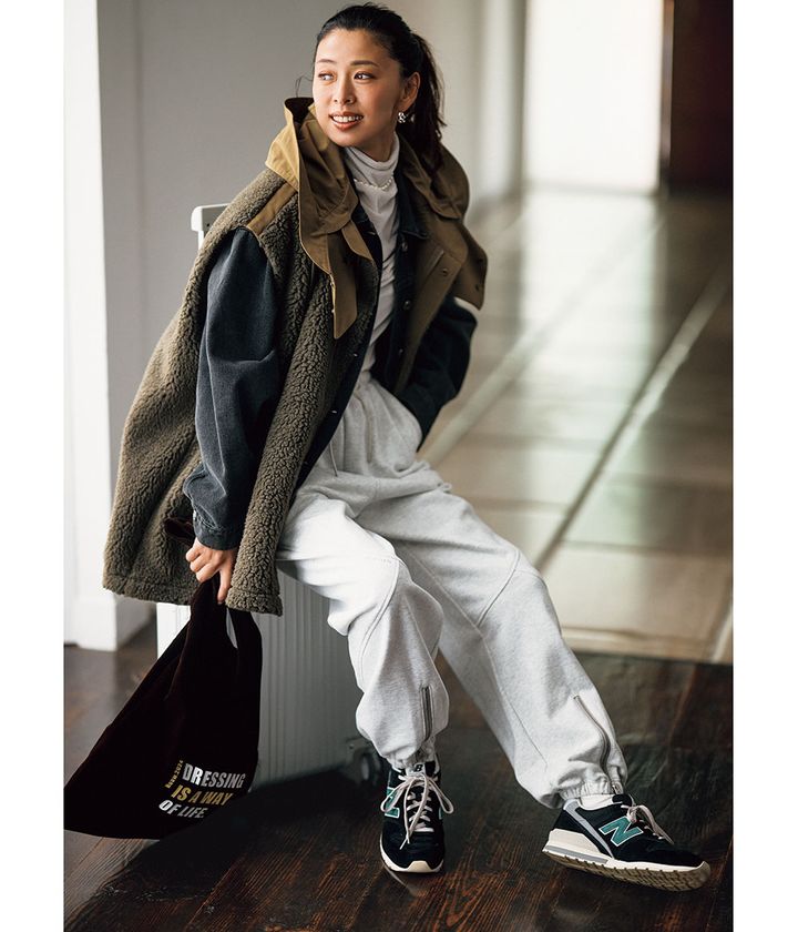 レイヤードで温度調節が簡単なボアベスト。Gジャンの上に重ね着して今どき感をオン。ラフなスウェットパンツに合わせても大人っぽさを保てるのが高ポイント。リアル買いしたので今から着るのが楽しみです!(スタイリスト・井関かおりさん)