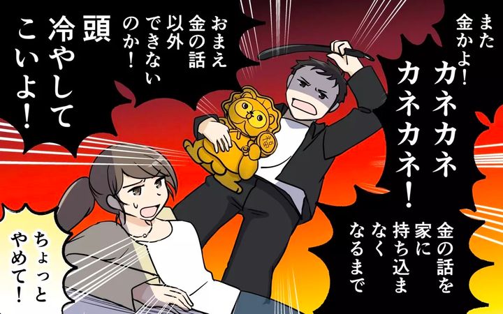 家事育児で疲れた妻に、物を与えて満足する分かっていない夫・清一。妻の趣味じゃないものばかりを買い与え、反応が薄いと逆ギレ。子どもの教育費や老後のためにお金を使ってほしくない妻をことごとく裏切ります。