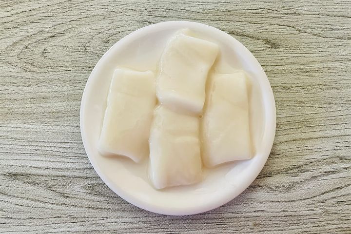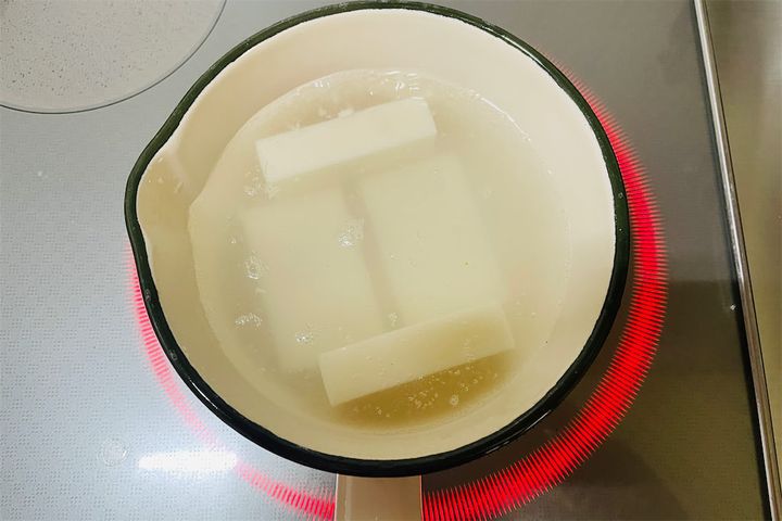 4. 小鍋に餅を水から入れて茹で、とろける前に取り出す。