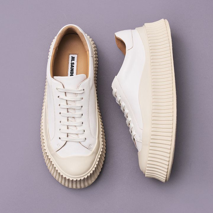 厚底、だけど大人っぽくまとまるミニマムなシルエットが気に入り購入。今まで持っていなかった真っ白スニーカーの使いやすさに驚きました。ワイドパンツや、ペンシルスカートと合わせたい気分です。
