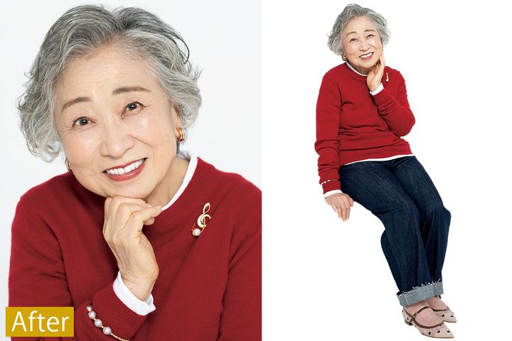 「いつも家族を温かく見守ってきてくれた母に親孝行がしたいと思い、応募させていただきました。変身後の母は終始ニコニコで、笑顔が輝いていて、とても嬉しそうでした」(娘・志保さん)「赤いニットやデニムを素敵に着こなしていて感激!これからもふたりでオシャレしてお出かけしたいです♡」(孫・真子さん)「キレイに変身した祖母がとても嬉しそうだったので、僕まで幸せな気分になりました」(孫・智史君)