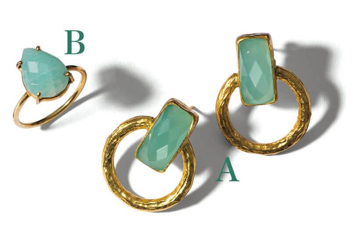 A・ピアス¥9,900/マナ ローザ ジュエル(マナ ローザ) B・リング¥6,800/コフルジュエリー(ロードス)