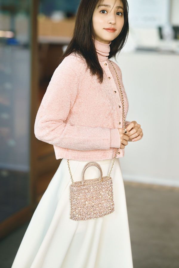 バッグ¥57,200/アンテプリマ/ワイヤーバッグ(アンテプリマ ジャパン) カーディガン¥15,400/リランドチュール ニット¥9,350/Noëla スカート¥24,970/ハッシュニュアンス(オンワード 樫山 お客様相談室) リング¥5,280/ネネンジュエリー(ロードス)