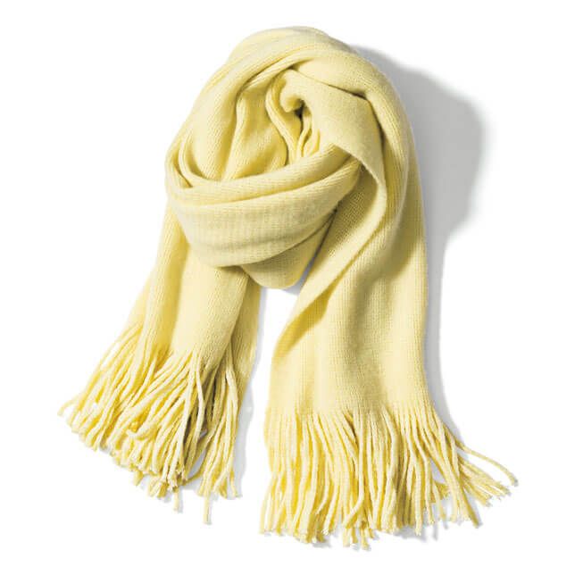 ふんわりなめらかな肌触りのニット素材。大判サイズなので、巻き方のアレンジも自由自在に。