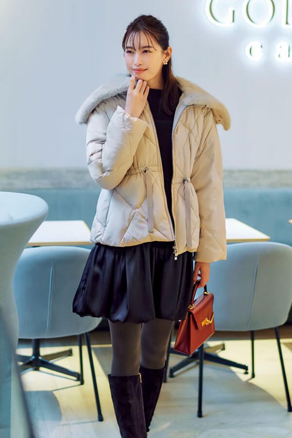 今季どのブランドでもリリースされている「ショートダウン」。あったかくて軽くて、扱いやすくてとっても便利なので、お正月にはうってつけ。でも、インナーコーデまでカジュアルだとラフに転びすぎてご近所着になりやすいので注意が必要。そこで華やかで女性らしいスタイルが叶う、着こなしをピックアップ!